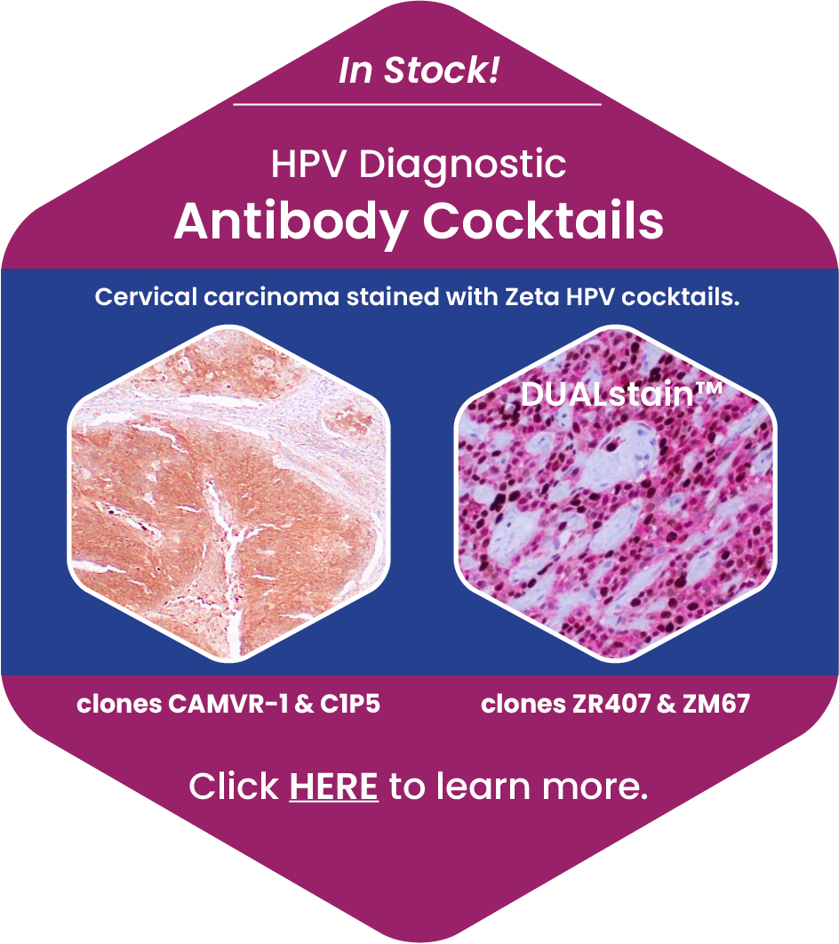Zeta Corporation is leader in IVD precision recombinant antibodies for immunohistochemistry. Zeta is an ISO 13485:2016 and FDA registered biomedical company that manufactures and distributes IVD antibodies for Pathology/IHC. We provide the highest quality of antibodies to help pathologists diagnose human tumors and diseases. Zeta antibodies are carefully curated to provide reproducible results on formalin-fixed, paraffin-embedded (FFPE) sections manually or using commercially available automated equipment. Zeta utilizes its collective knowledge of over 75 years to validate and standardize every antibody individually for immunohistochemistry (IHC) application.